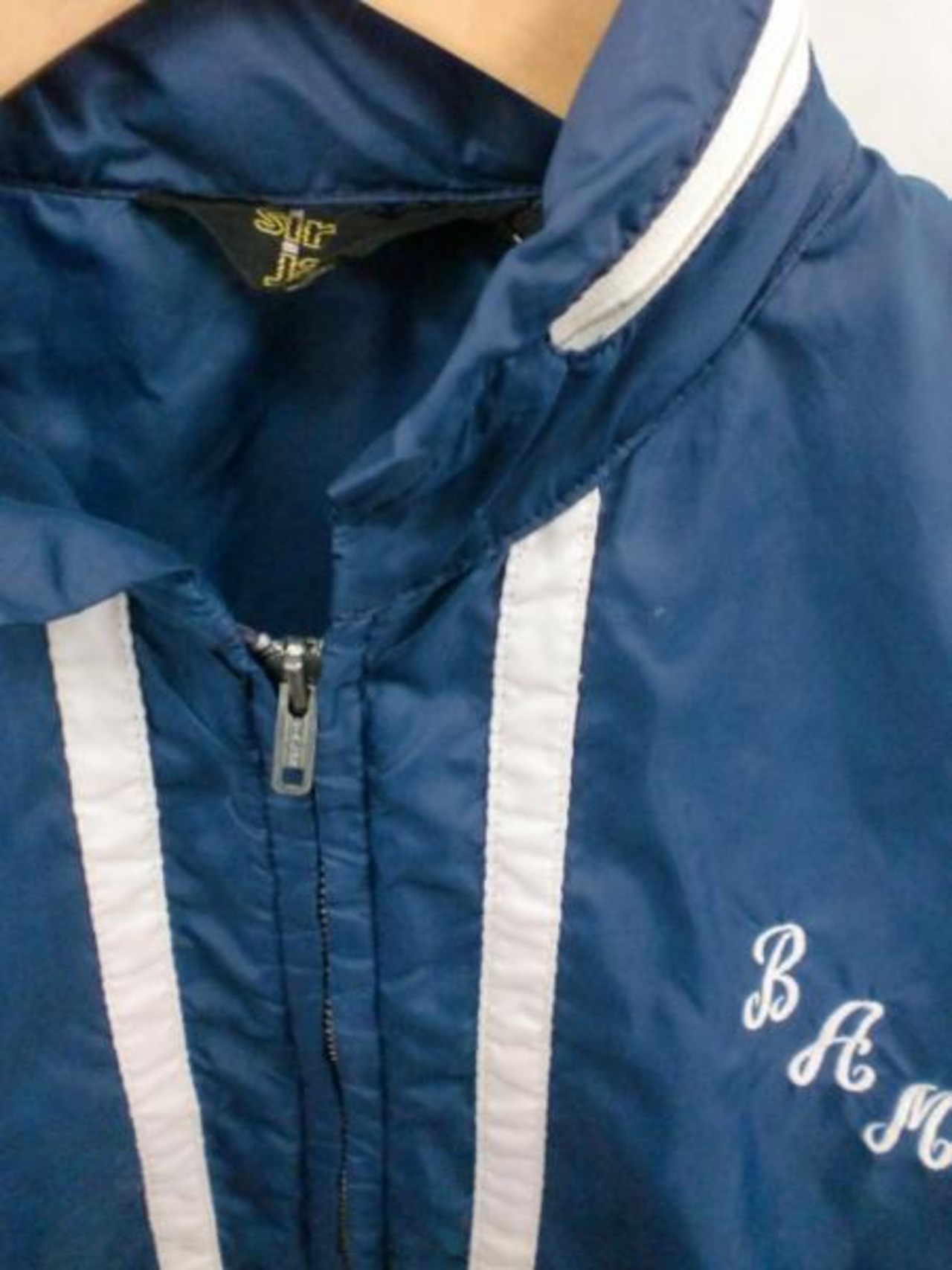 使用感有り、肩付け根、脇に小穴、袖リペア、フロントにリペア、フロントラインに解れがあります。TALONジッパー、フード内蔵。USA仕入れ、SIRJACのナイロンになります。フロントにライン、胸にロゴ入り、ネイビーカラー、古着ならでは他にはない年代物、希少なSになります。カッコイイです。